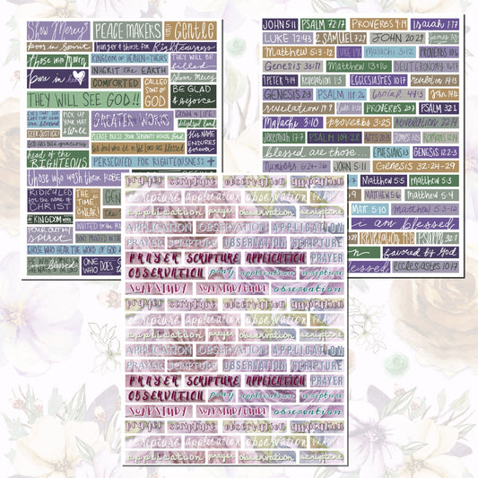 I Am Blessed Digital Study Sticker Kit, instant download bible floral watercolor stickers, printable sticker sheets for Christian women
