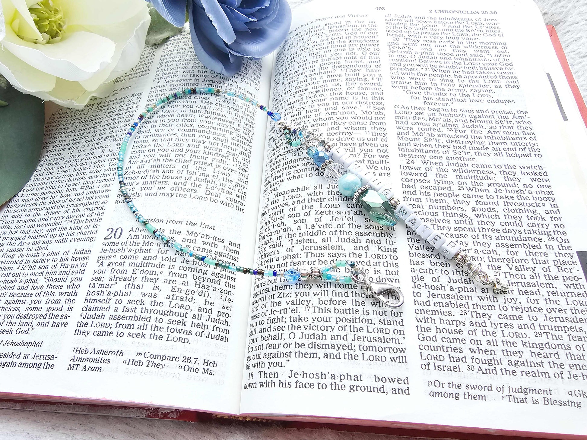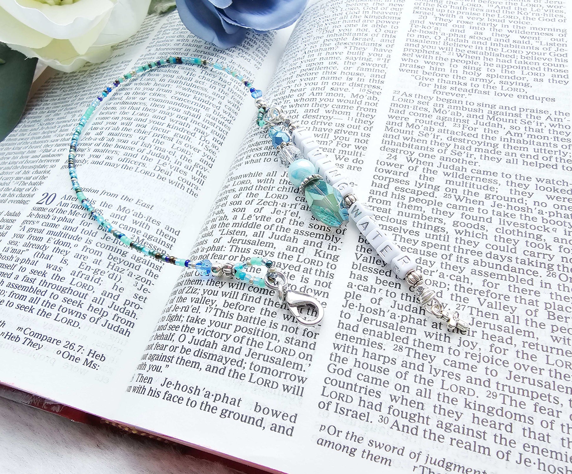 Beaded Bible half-strand Bookmark Clip-on charm - The Living Water - Blue and silver bible accessories