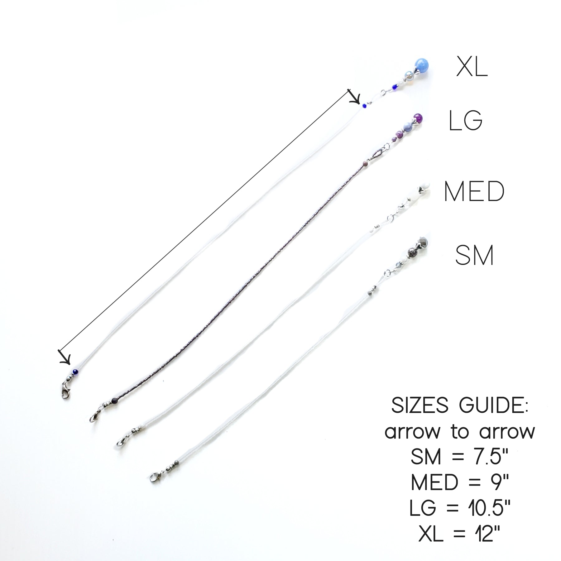 ♥ CHOOSE the size you'd like - these are measured from bead to bead (refer to picture). SM = 7.5", MED = 9", LG = 10.5", and XL = 12". If you need a different size please contact me BEFORE you purchase this listing.