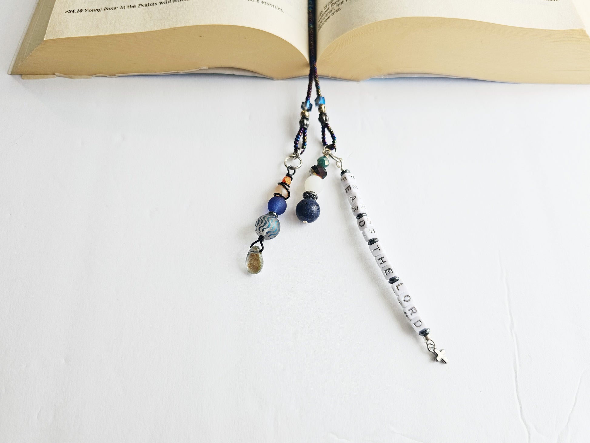A new decorative beaded bookmark to hold your reading spots (in your bible or other books), while also reminding you not to fear; God is with you.