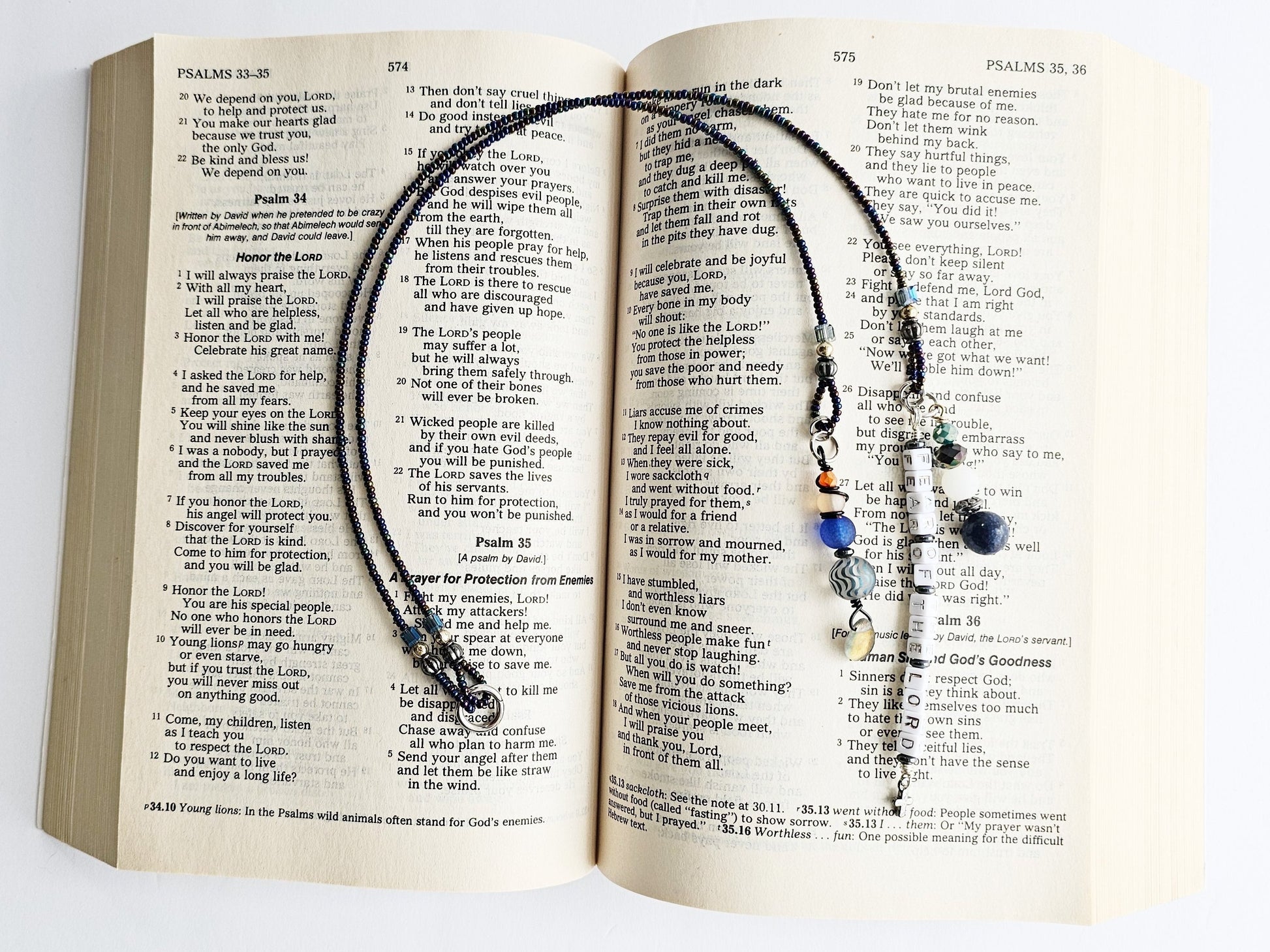 ♥ This listing is for a 2-Strand hematite (dark silver) bookmark - slide one of the strands into the open gap where your bible or book is bound, and use the other strand to mark your spot. If the binding of your bible or book doesn't have a gap, then use both strands to mark your spots.