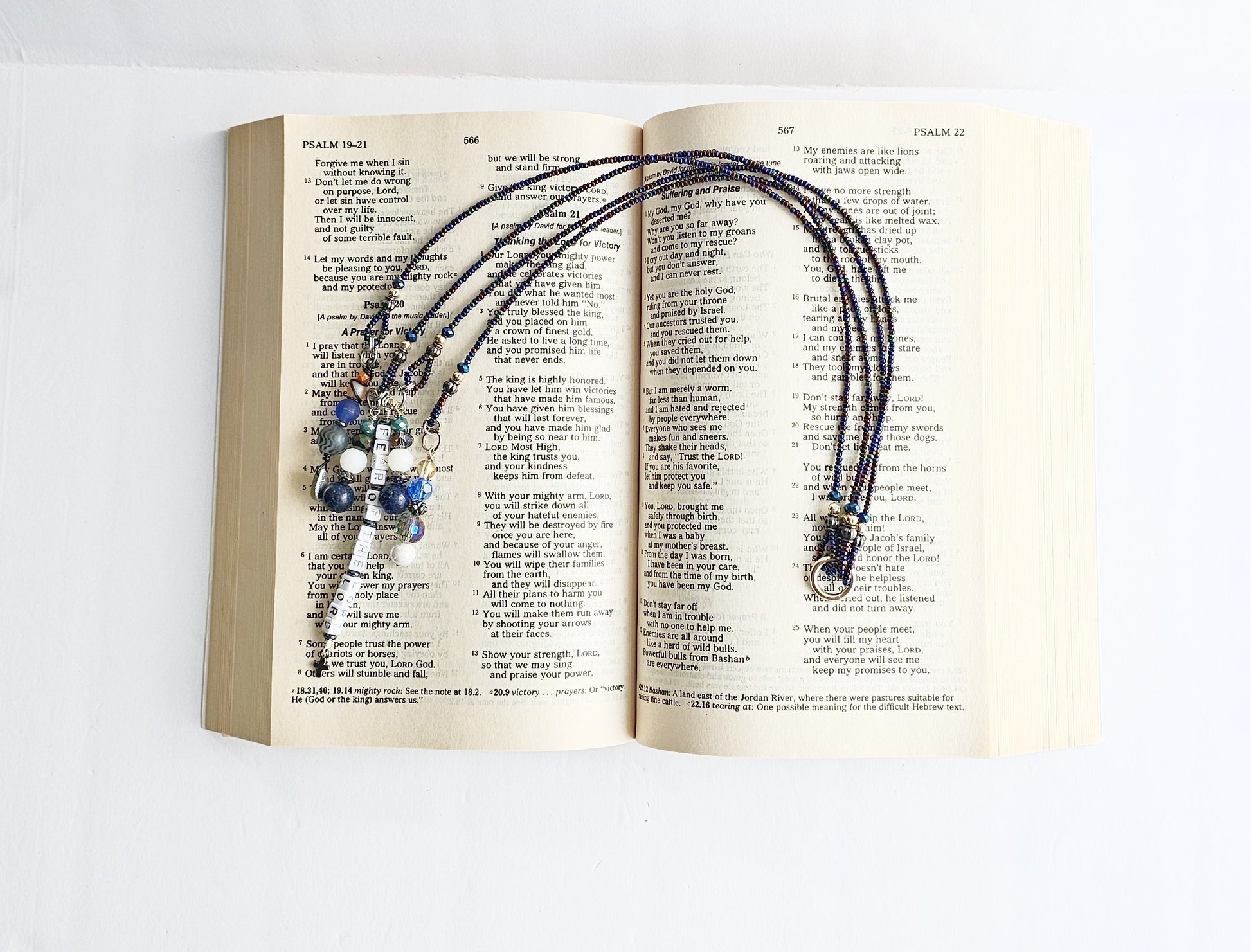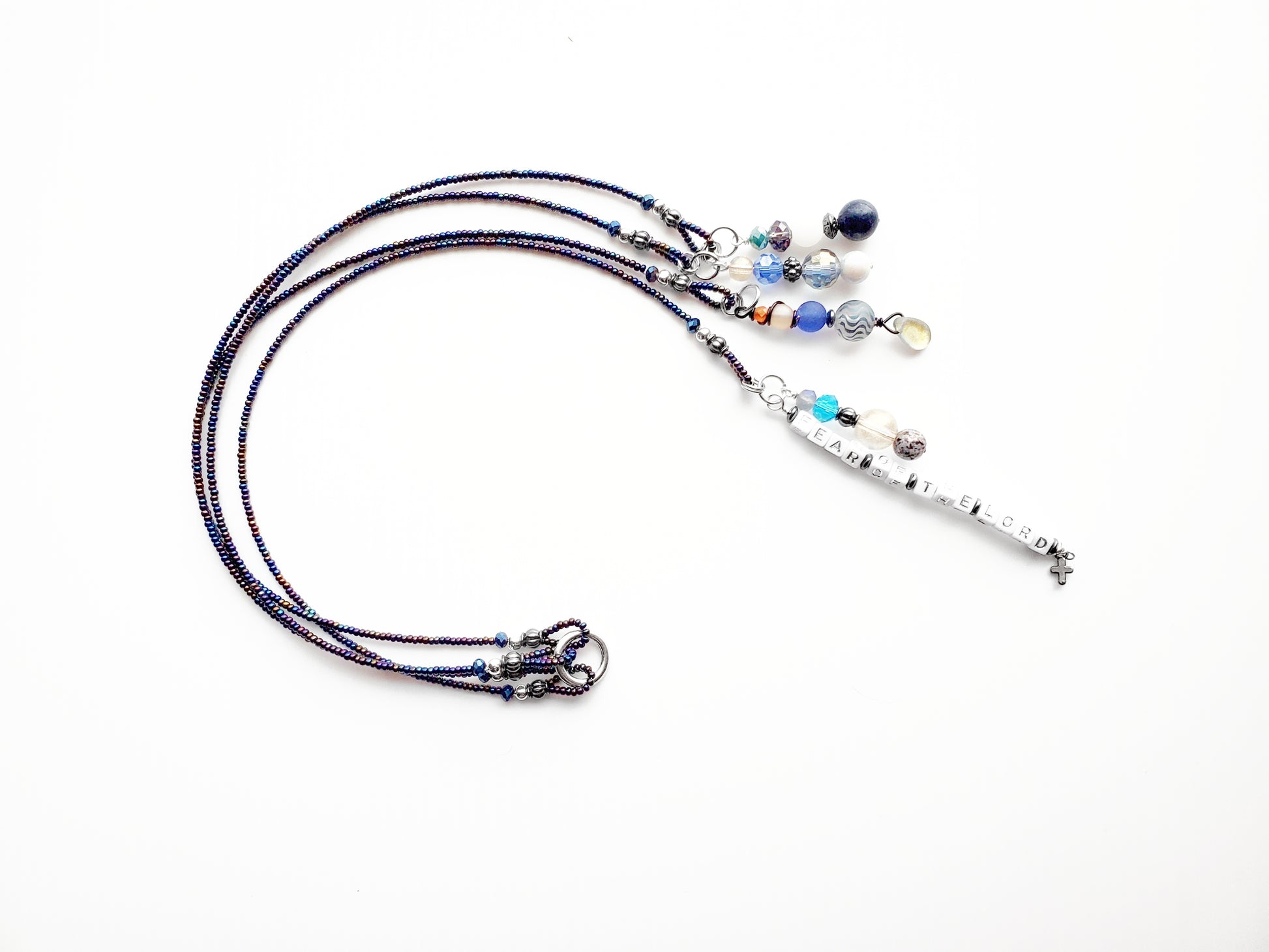 A new decorative beaded bookmark to hold your reading spots (in your bible or other books), while also reminding you not to fear; God is with you.