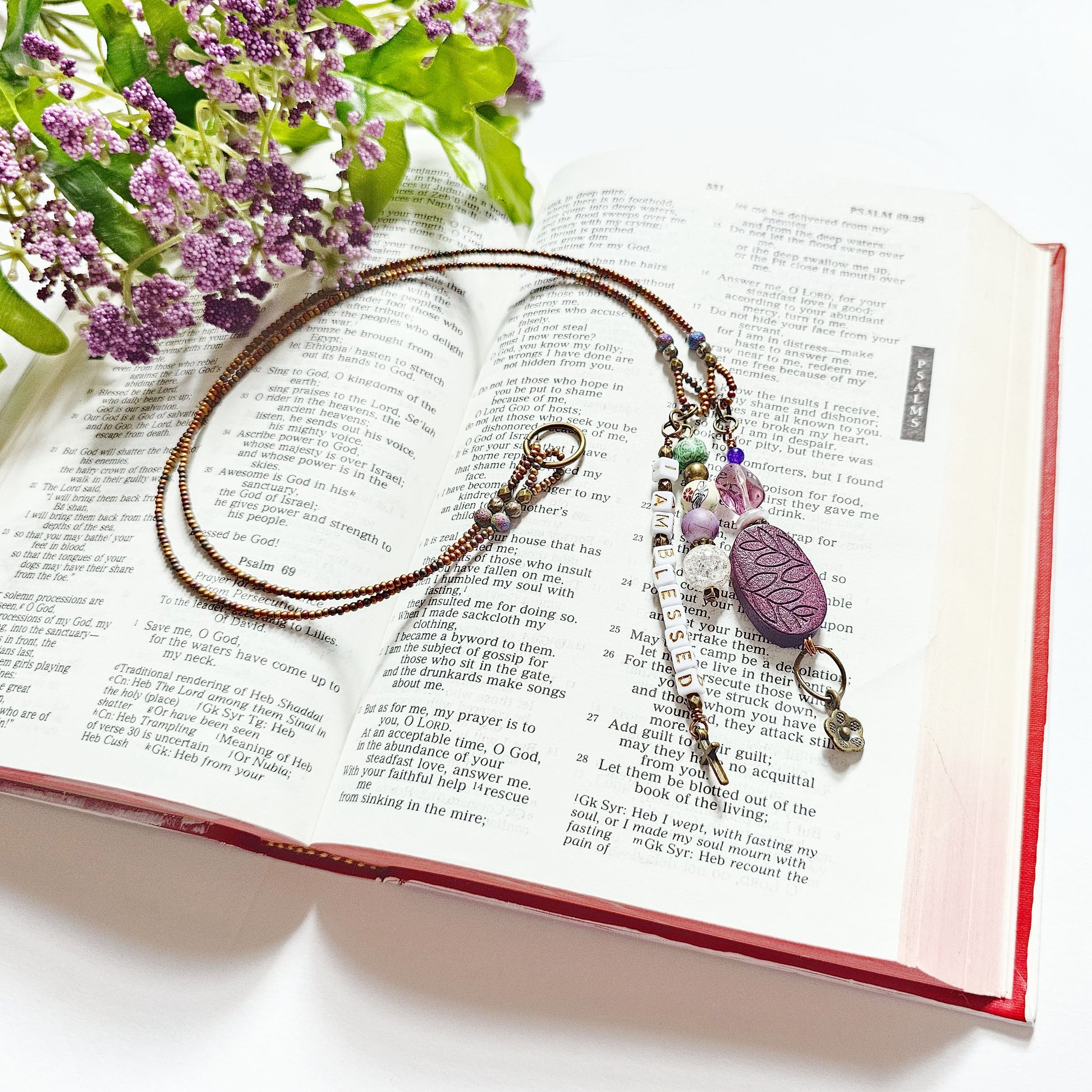 A new decorative beaded bookmark to hold your reading spots (in your bible or other books), while also reminding you of who you are in Christ - Blessed!