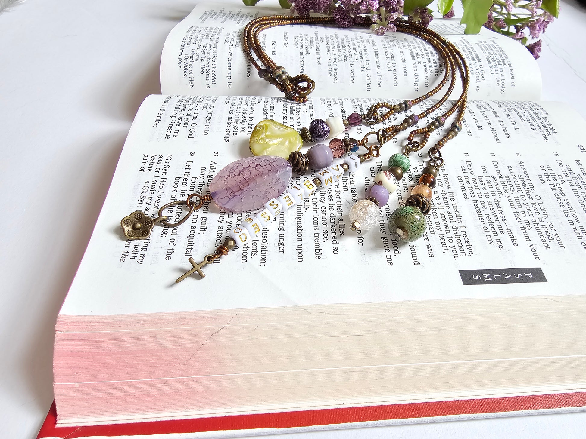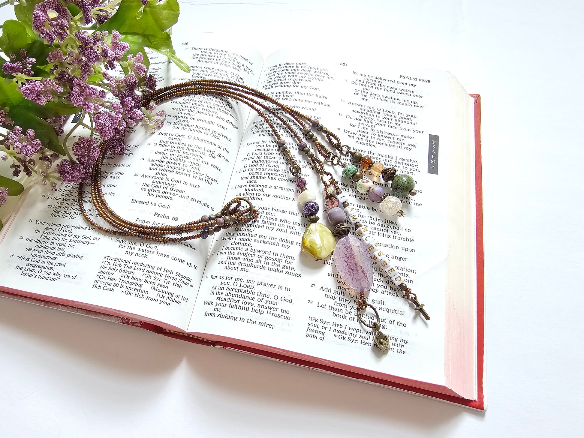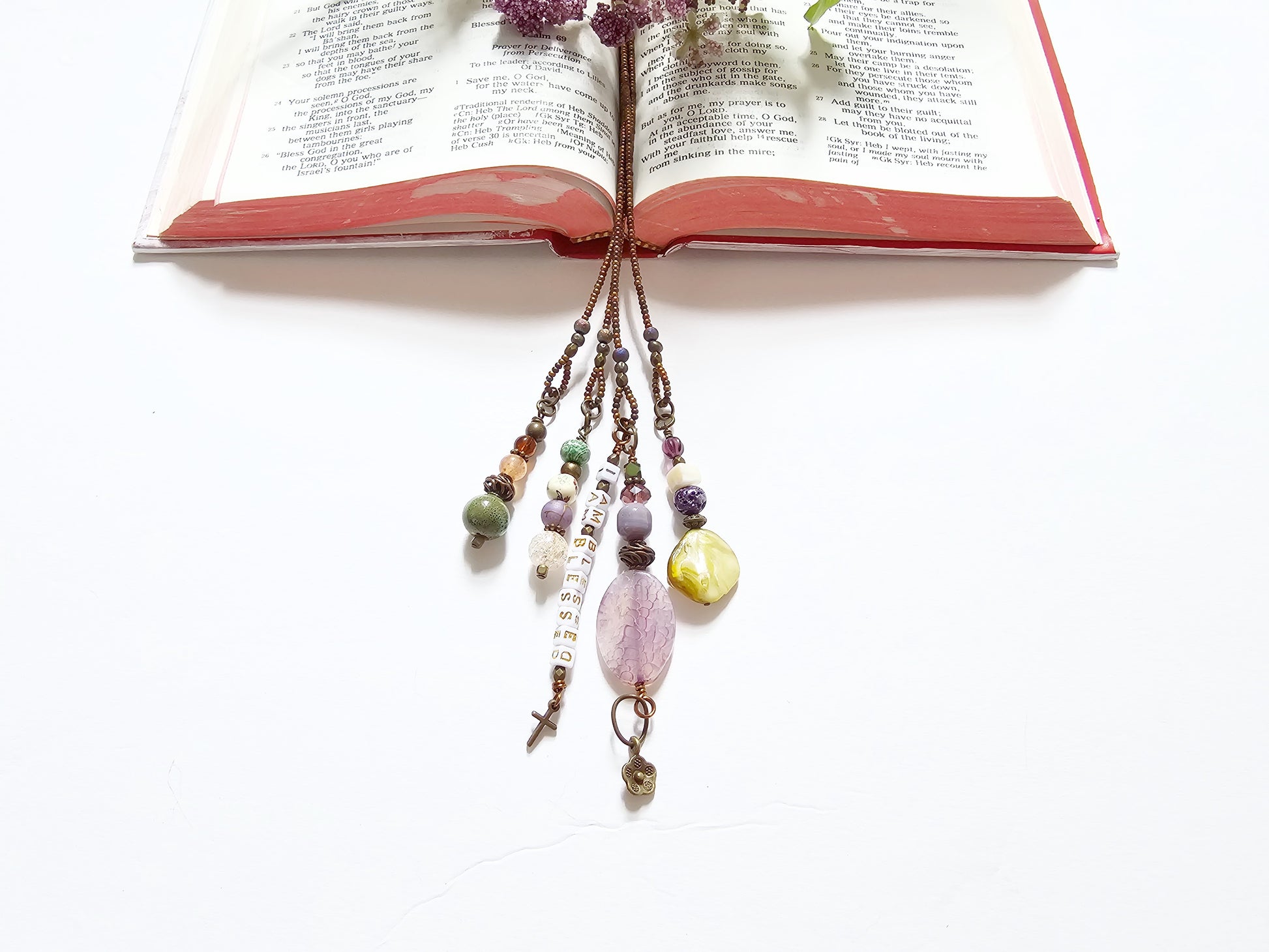 ♥ This listing is for a 4-Strand bookmark - slide one of the strands into the open gap where your bible or book is bound, and use the other 3 strands to mark your spots. If the binding of your bible or book doesn't have a gap, then use all 4 strands to mark your spots.