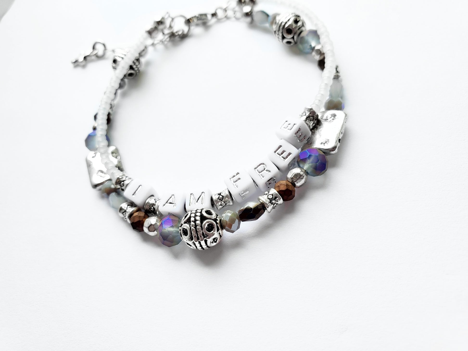 • DETAILS: This listing is for an easy-to-wear neutral color 2-strand bracelet with your favorite 'I AM' statement. (Choose from a dropdown list)